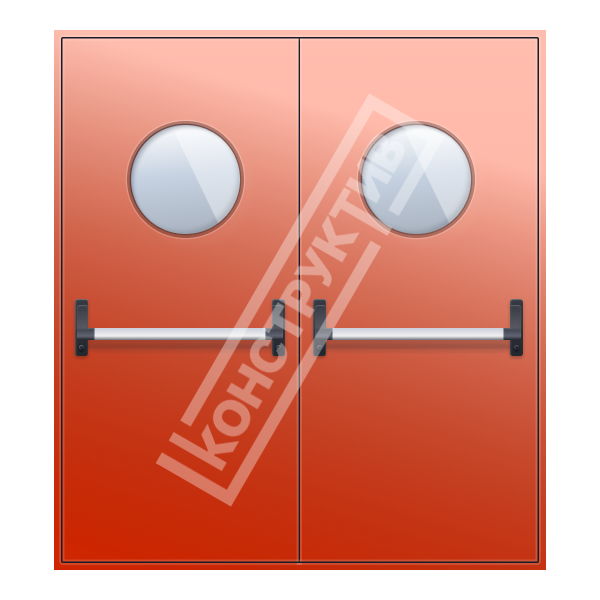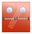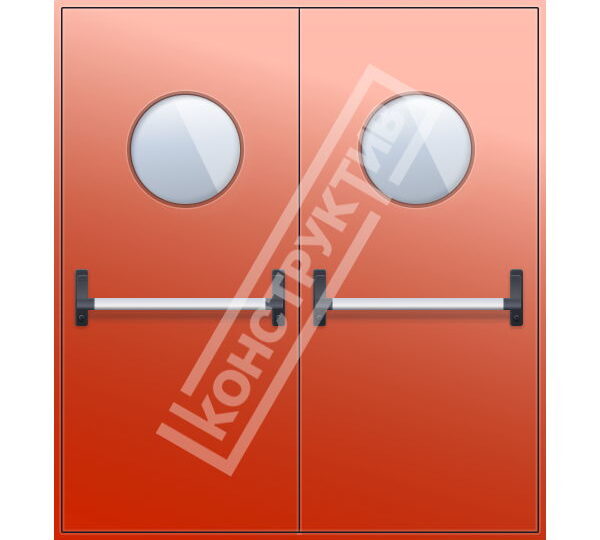 Двупольная противопожарная дверь с антипаникой и круглыми окошками EIS15,30,45,60
